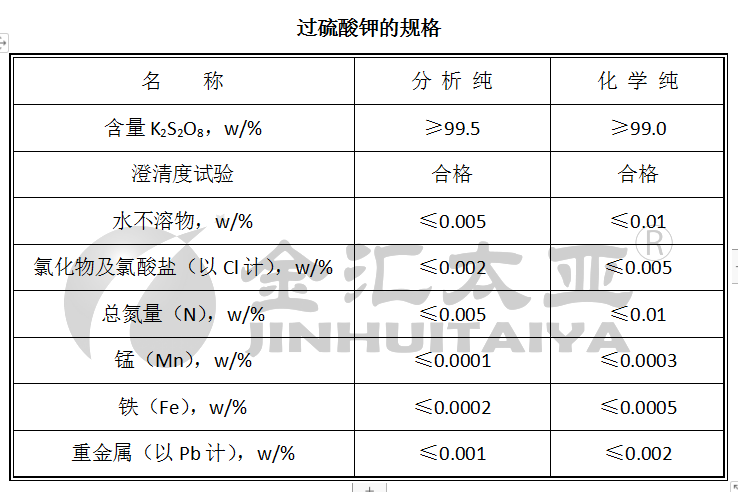 分析试剂、氧化剂、洗照片。聚合反应引发剂。照相冲洗(除去硫化硫酸盐)。